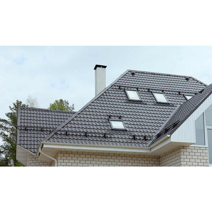 • Сталь 0.4 мм (с учётом металла, цинкового и защитно-декоративного покрытия) оберегает кровлю от механических повреждений.